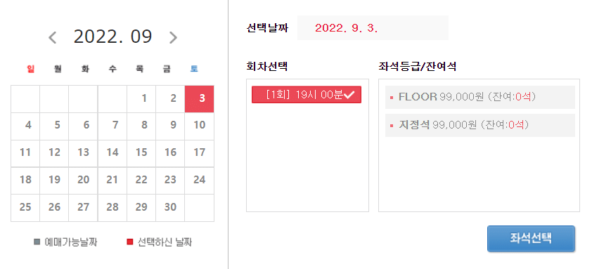 (선예매,일반예매 이후 2~3차례에 걸쳐 좌석을 오픈해서 정확히 몇석인지는 모름!)