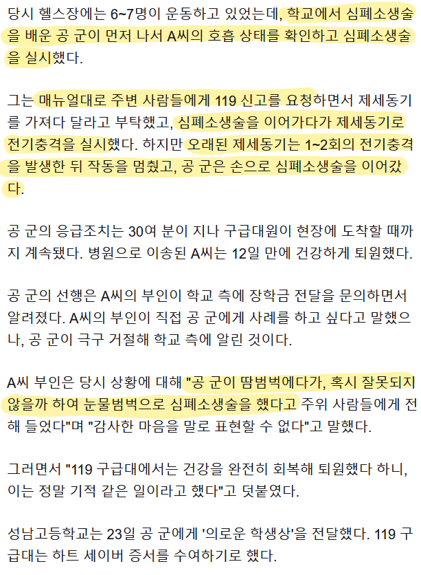 제세동기 고장나고 계속 심폐소생술 하는 것도 엄청 힘들고 한편으론 무서웠을텐데