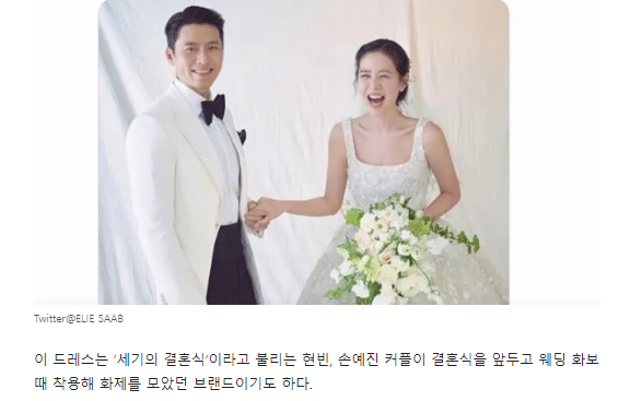 손예진이 입어 화제가 된 엘리사브는 룩셈부르크 왕세자 비 스테파니가 2012년 결혼식을 올리며 제작에 3,900시간이나 걸린 드레스로 유명하며 중동 재벌가, 할리우드 셀럽들이 선호하는 브랜드로 알려져 있다.