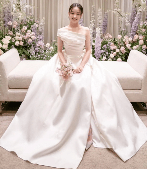 손연재는 이날 여성 드레스 디자이너 브랜드 엘리사브의 2023 spring collection을 결혼식 본식을 빛낼 웨딩드레스로 선택했다.