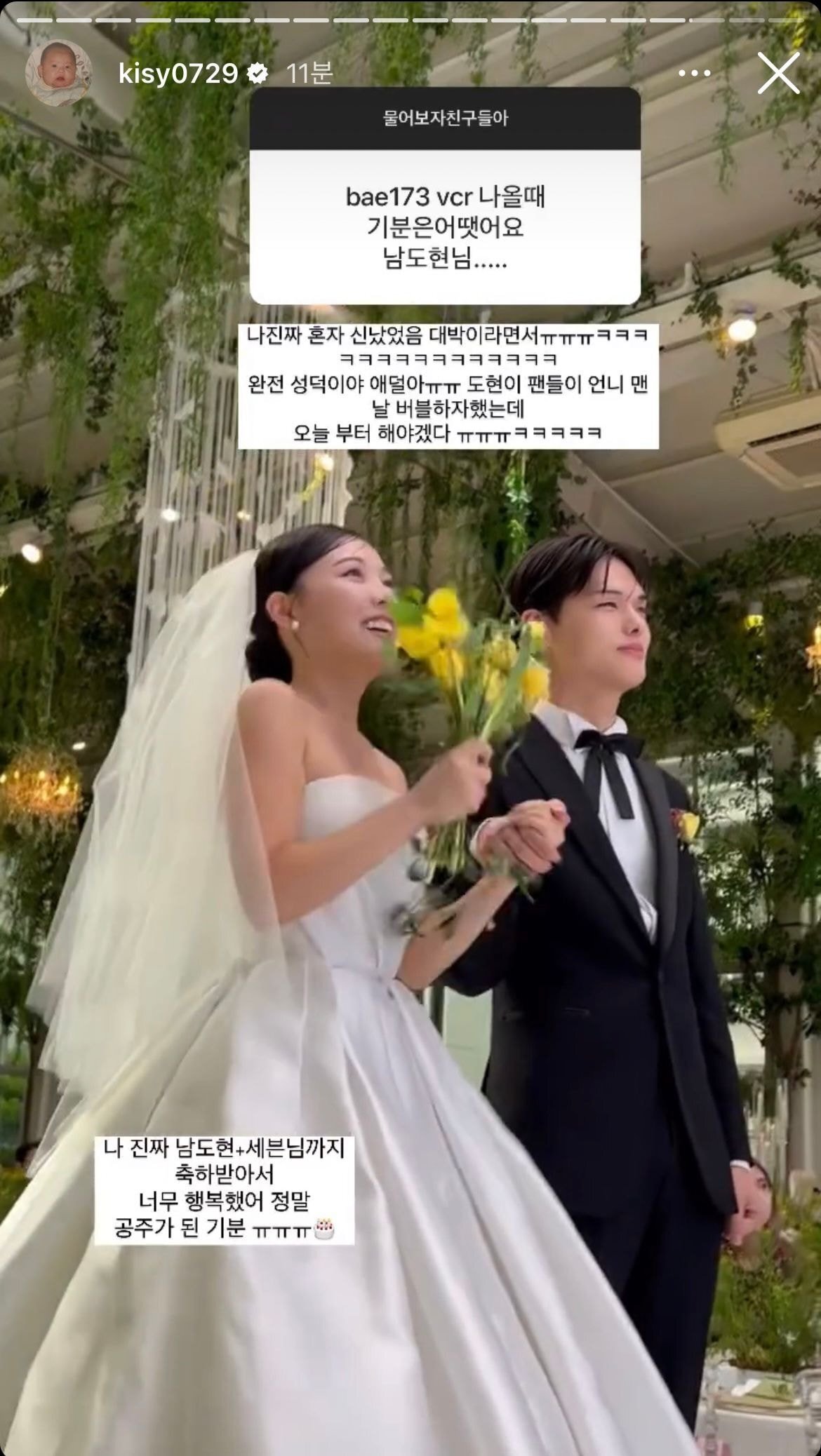 결혼식에 내 돌이 축하영상 보내줘서 성덕 인증