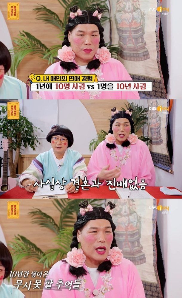 그는 "1년에 10명을 만났다는 건 가벼운 만남을 가졌다는 거다. 반면 10명 동안 한 명을 만난 건 결혼만 안 했다고 볼 수 있다. 그간 많은 추억을 남겼을 거다"라고 설명했다.