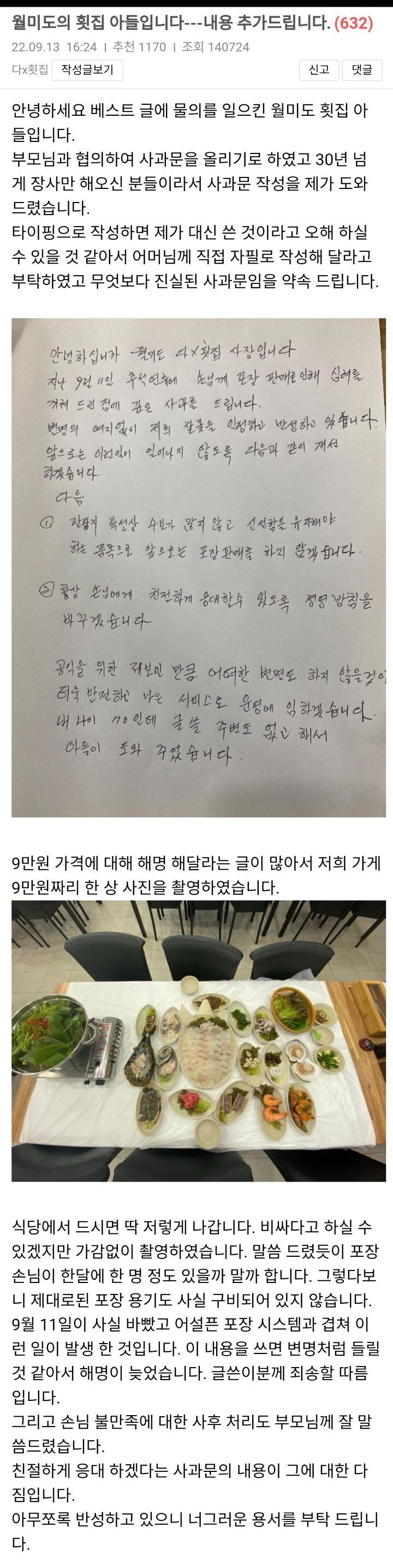 자필 사과문까지 올리셨는데