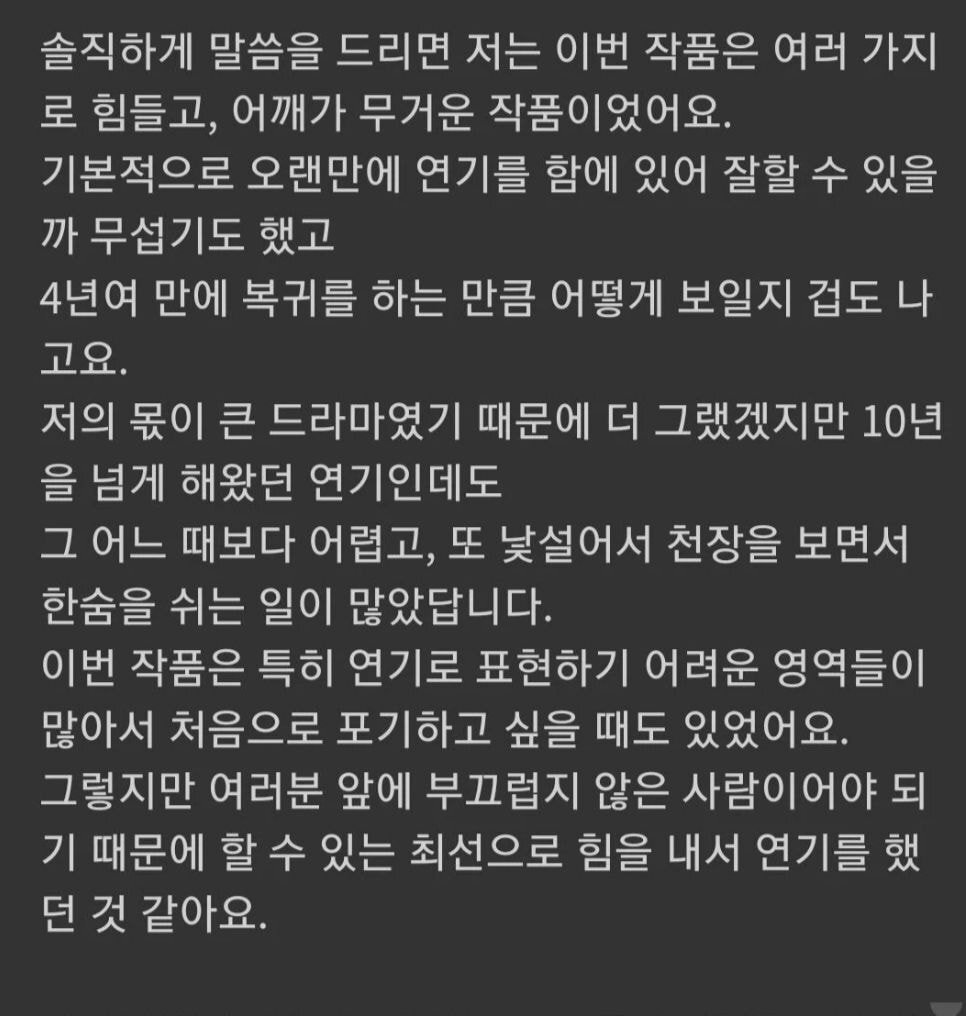최근 팬미팅에서 팬들에게 읽어준 편지中중일부
