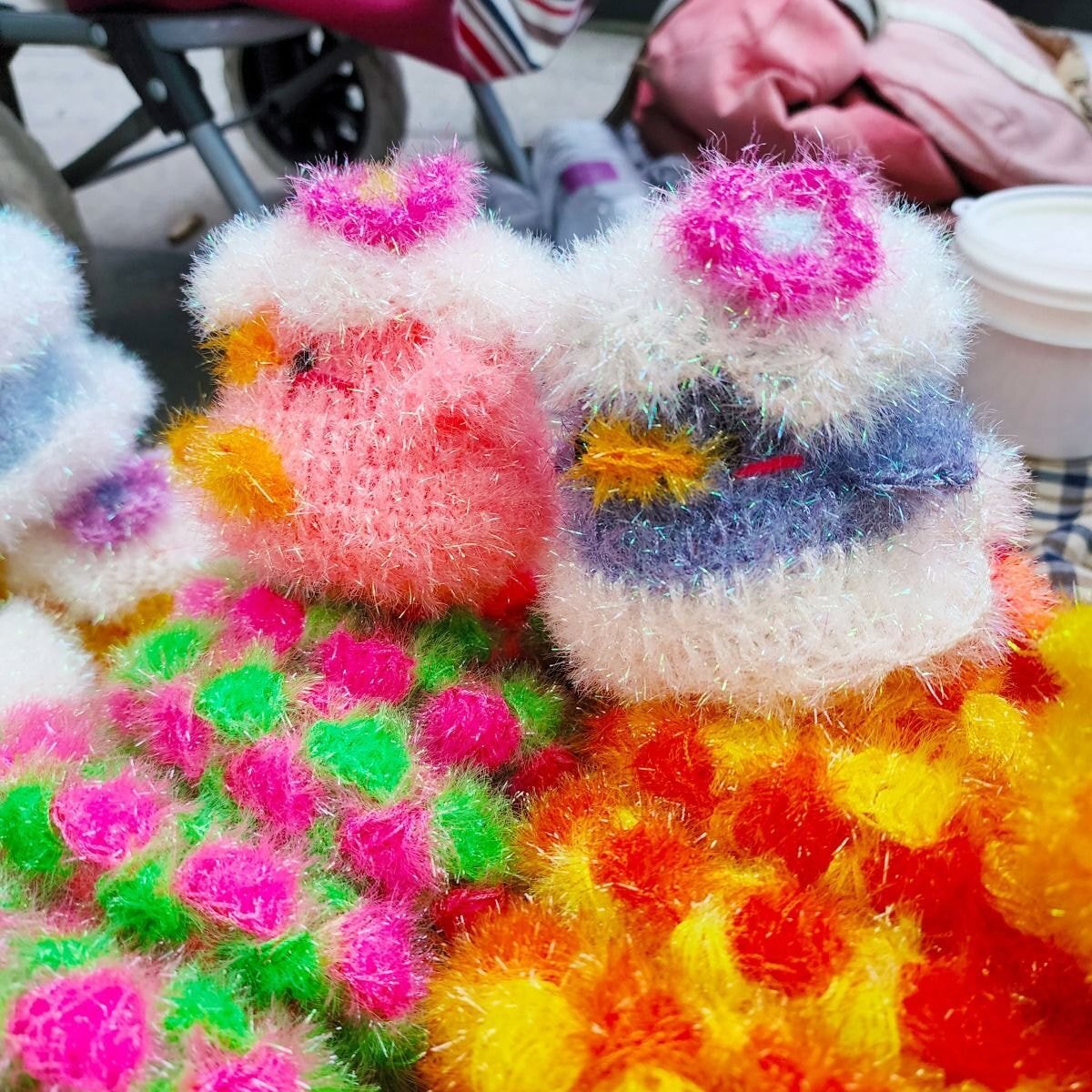 의정부역 에스컬레이터 옆에는 이렇게 뜨개 수세미 파는 노점이 몇 있는데 이번 봄신상(할머니 신상정보 X)으로 딸기/벚꽃가방 오리 나온듯ㄱㅇㅇ
