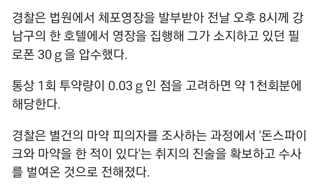 경찰이 돈스파이크한테 압수한 필로폰 양