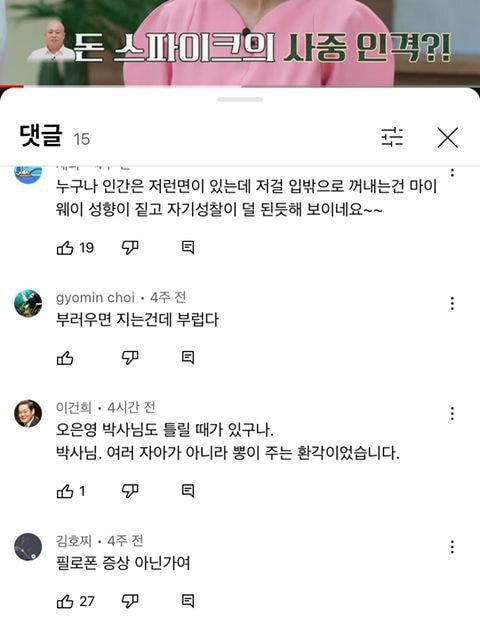 돈스파이크 금쪽상담소 영상에 4주 전 달린 댓글