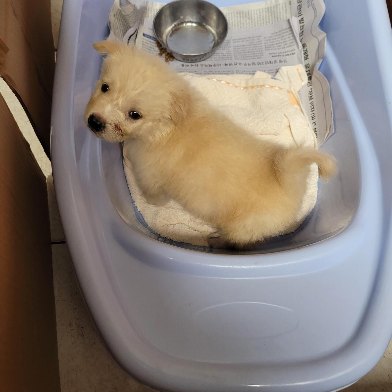 얼굴에 크게 상처 하나있고 털이 복실복실하다...