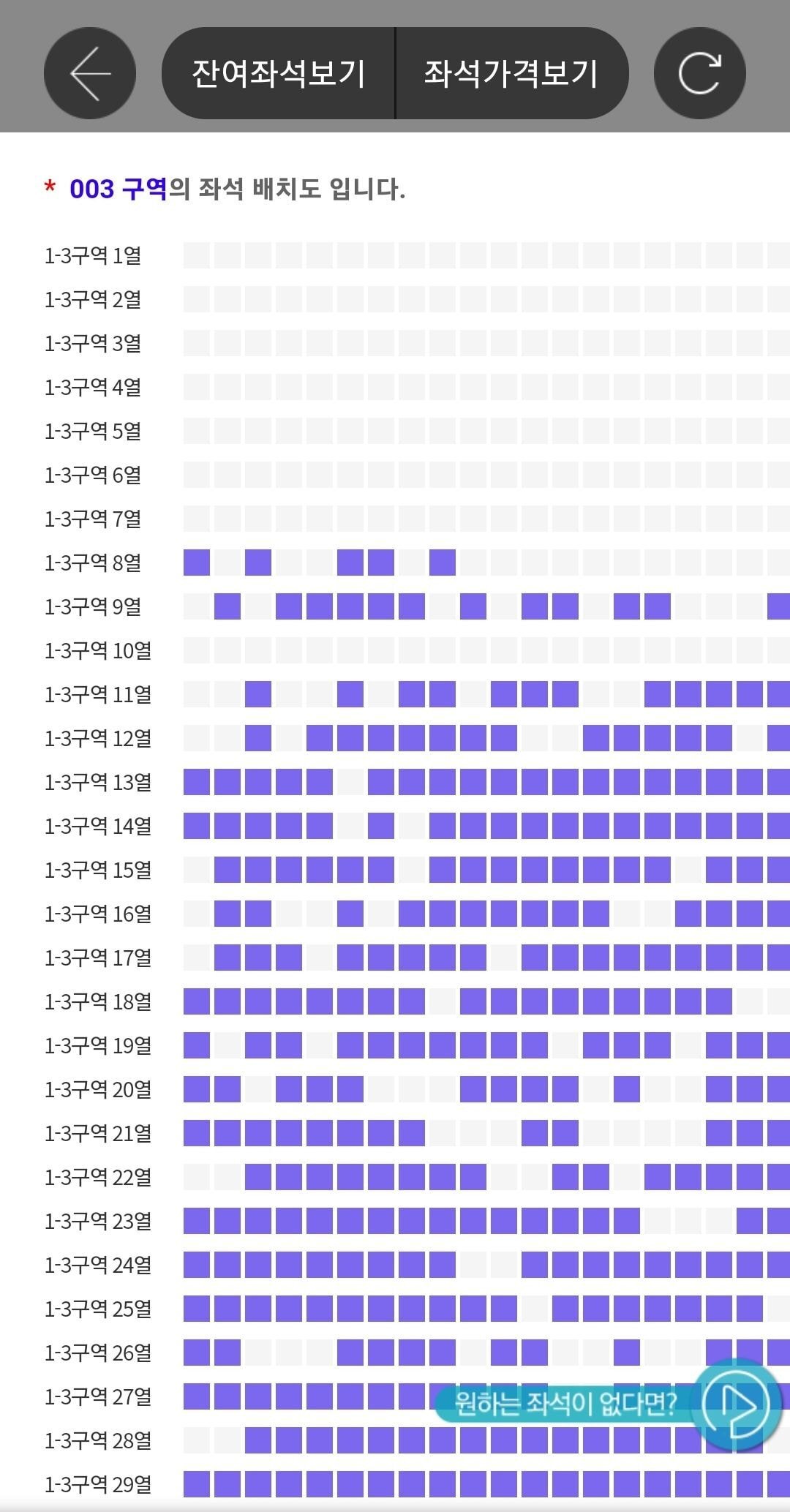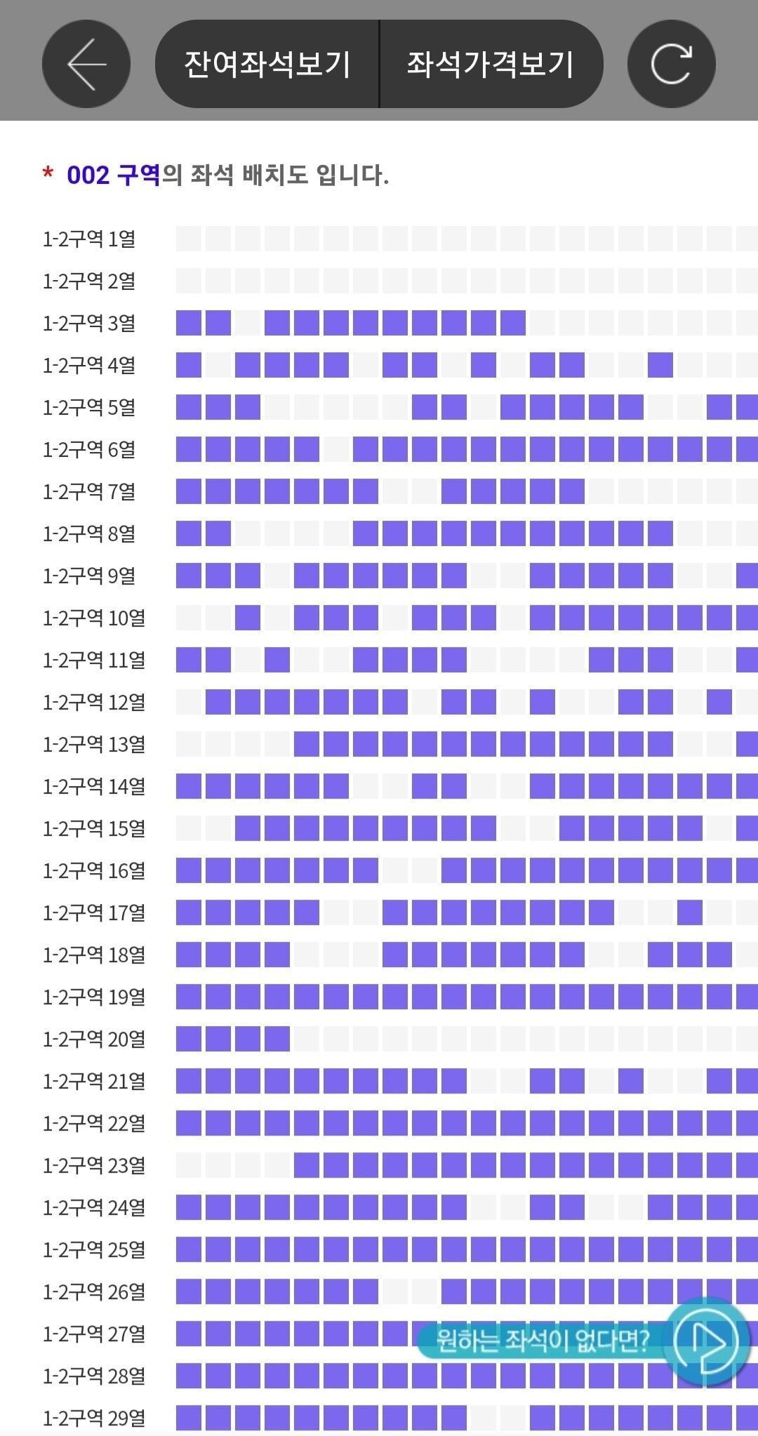 티켓팅 다음날 취소표 풀린 상황