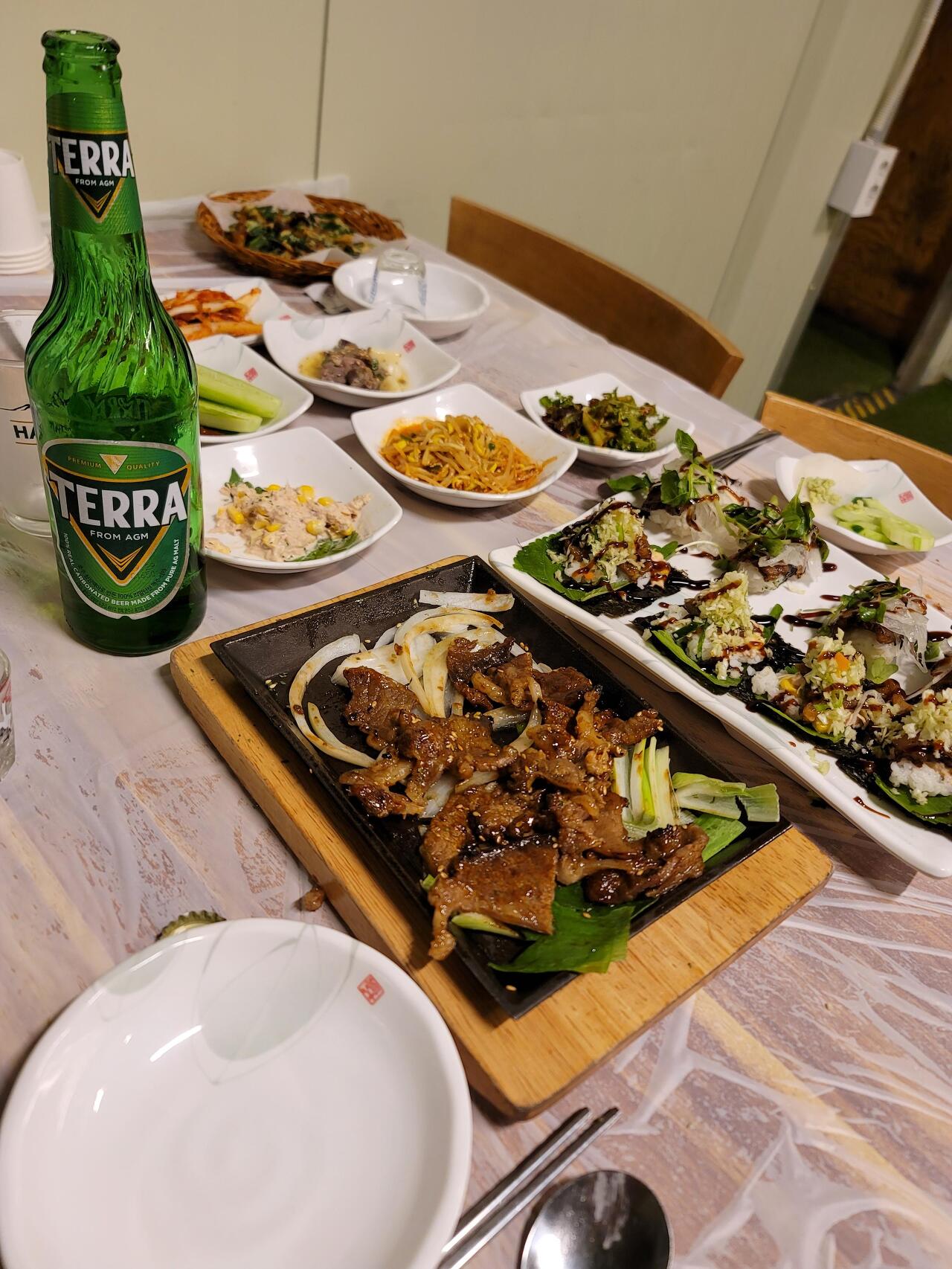 유명한 메뉴는 la갈비랑 및에 골동무침이었나? 골뱅이 오징어랑 대패삼겹 납작만두랑 같이 주는데 가성비 매우 끝내줌. la갈비는 초밥까지 만들어서 준다.
