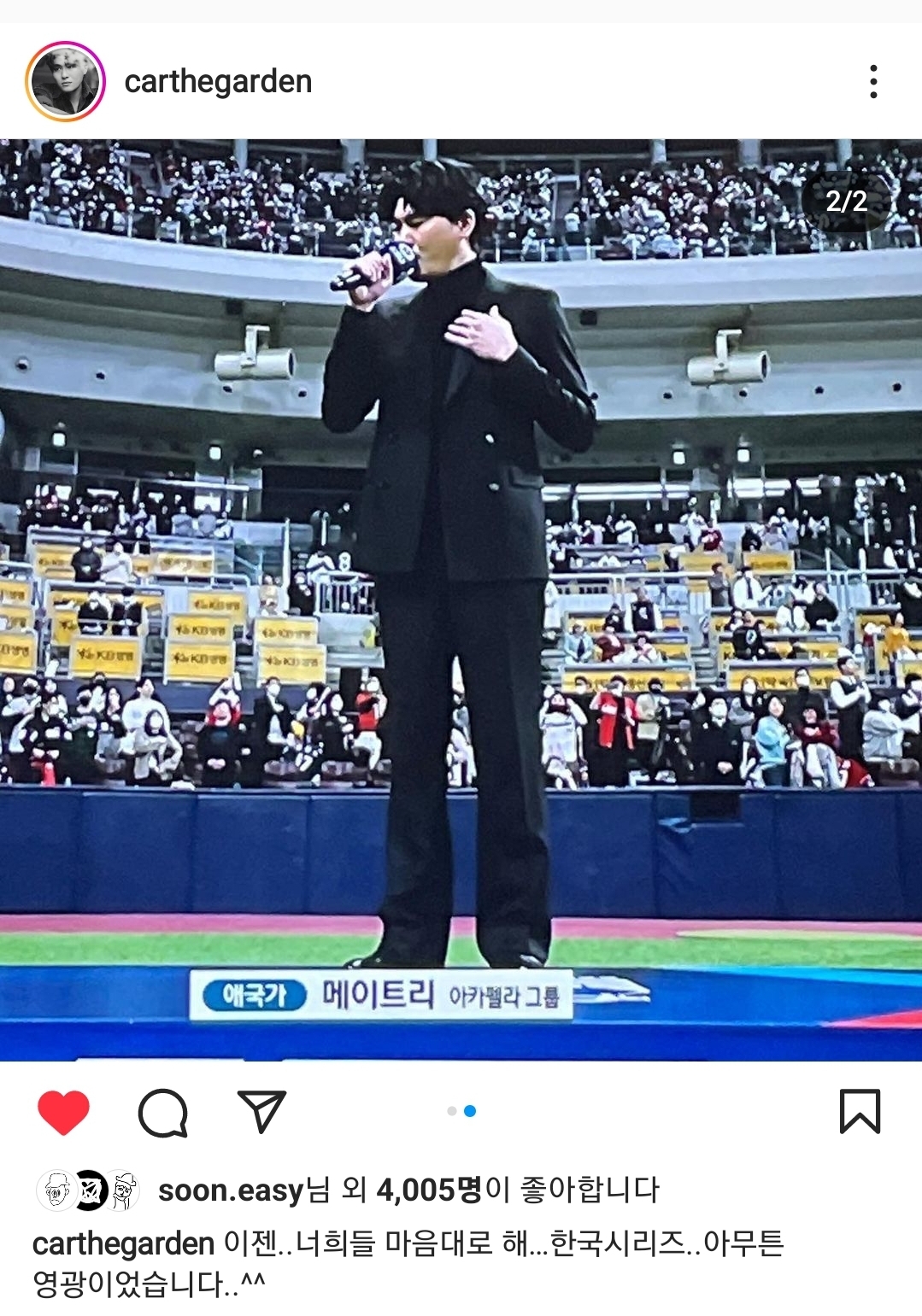 카더가든, 경기 전 애국가 제창