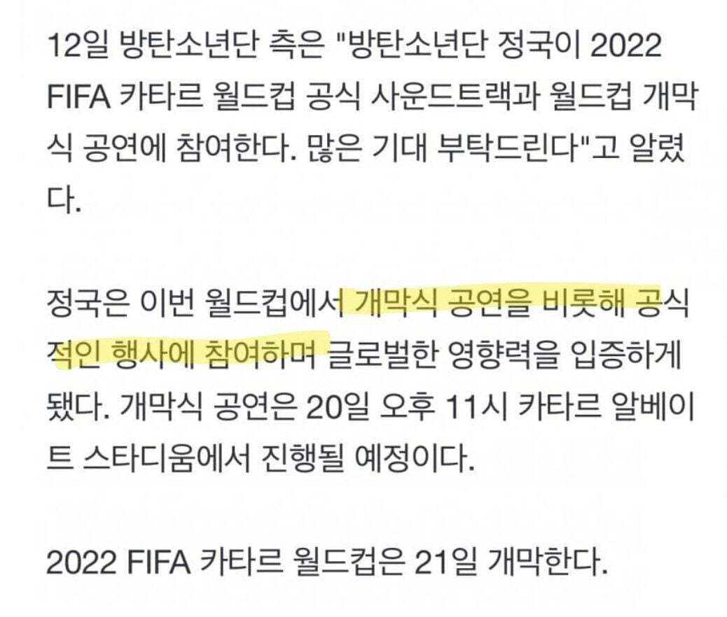 2022 카타르 월드컵 공식 사운드트랙 & 개막식 공연 참여 예정
