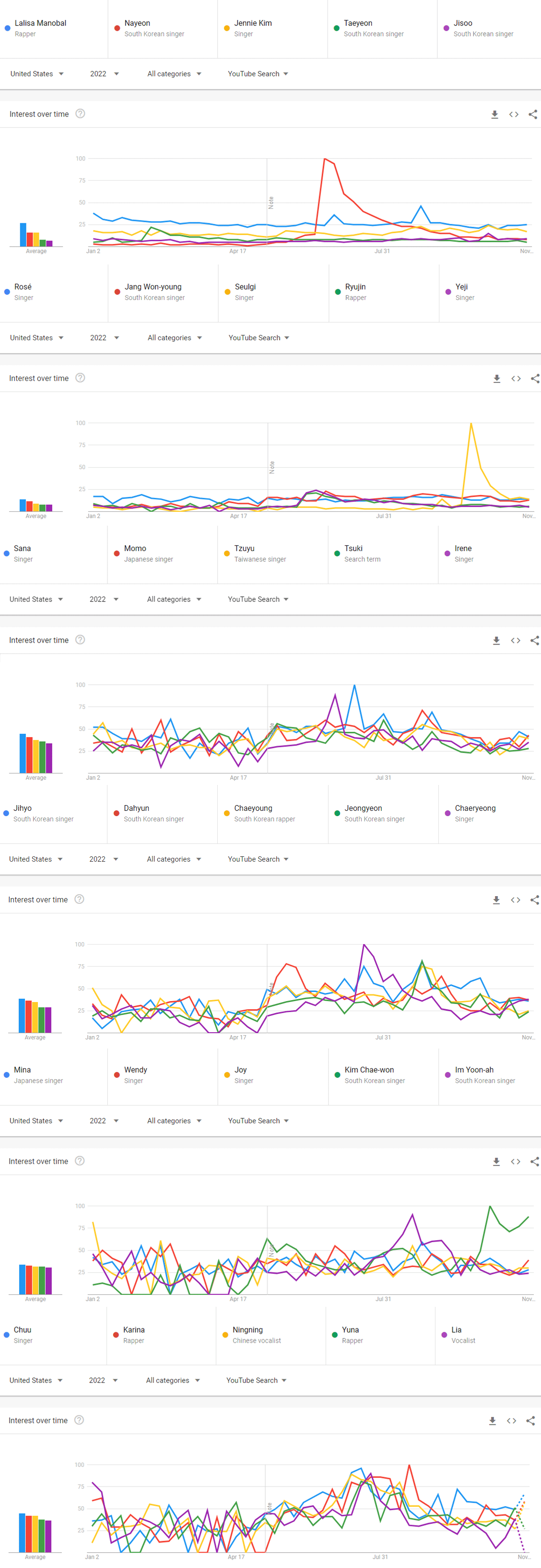 2022년 현재까지 미국 유튜브에서 가장 많이 검색된 케이팝 여자아이돌 멤버 순위