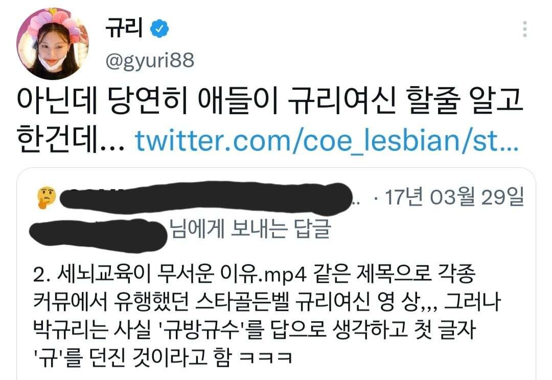 알고보니 규리는 '규방규수' 생각한거였다고...