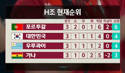 | 카타르월드컵 H조 최종결과 대한민국 16강 진출! (0) | 2022.12.03 |