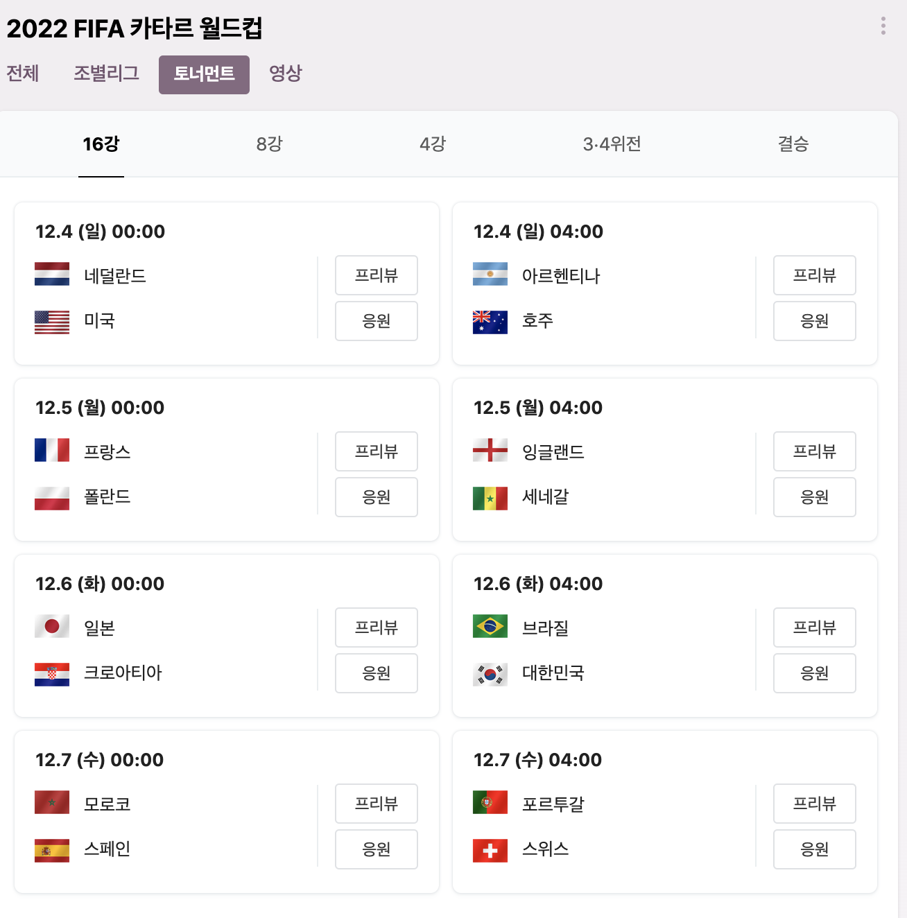 [12/6] 4:00 한국 vs 브라질