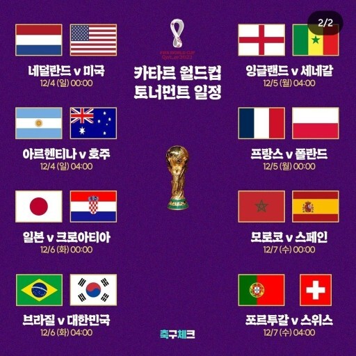 카타르 월드컵 한국 일정(경기시간) 및 대진표 정리