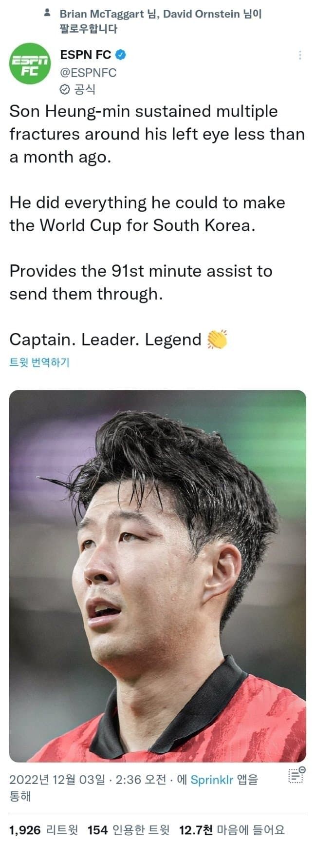 | 손흥민 인스타에 16강 축하 해주는 전세계 축구인들 (0) | 2022.12.03 |