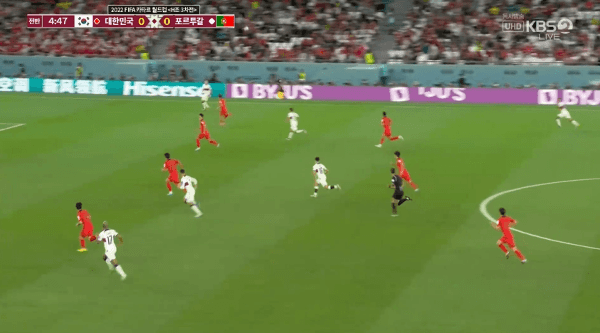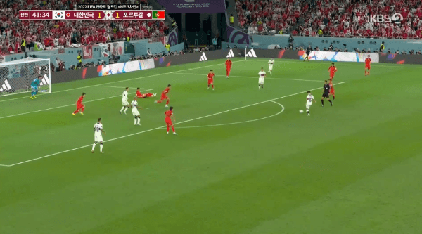 다리 사이 통과된 포르투갈 선수 3명은 하프부터 손흥민에게 이미 붙었었고