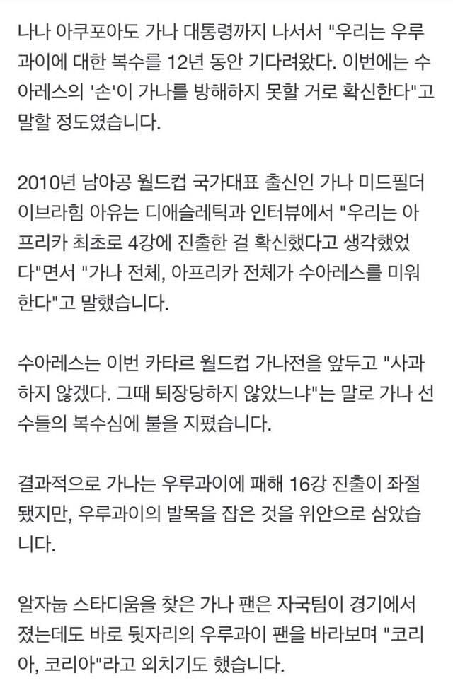 가나 수비수 우리가 갈 수 없다면 우루과이도 갈 수 없다