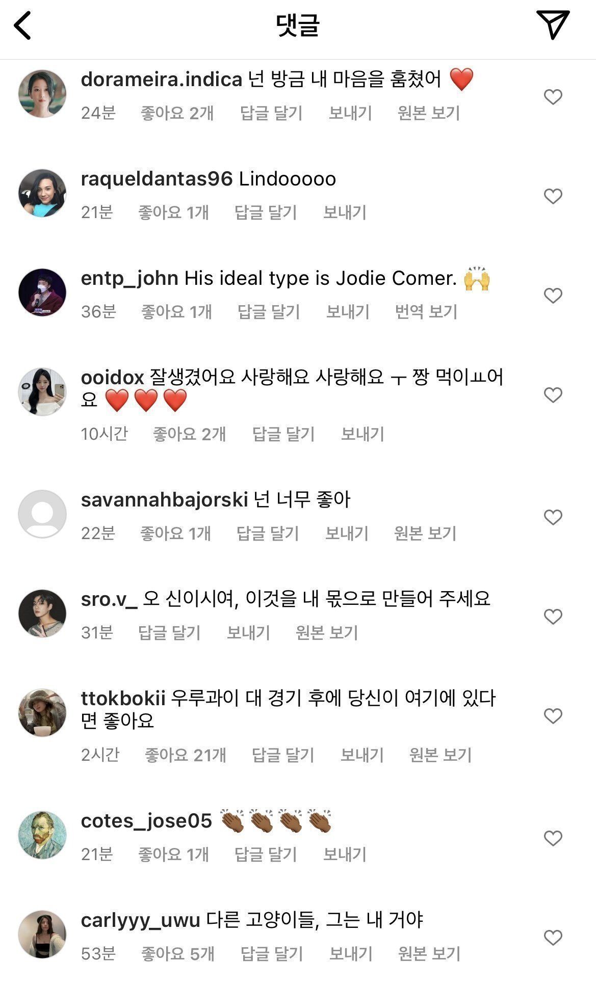 조규성 황희찬 인스타 댓글 온도차이