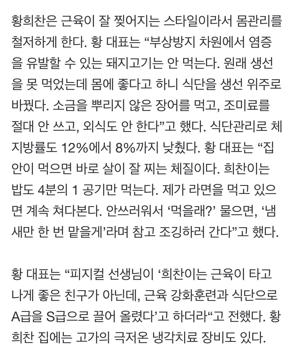 훈련 일정과 그 날 공복 체중에 따라 식단 계획한다고 함