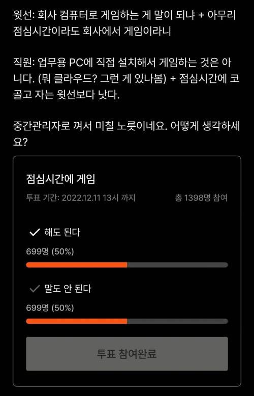 점심시간에 내 노트북 가지고 와서 게임하면 머라하는 회사가 문제지만
