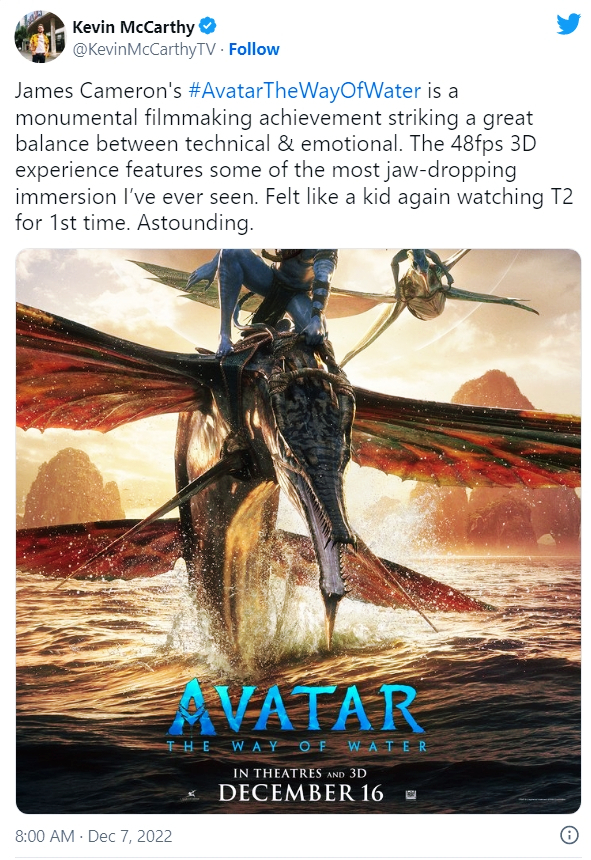 “판도라의 가장 위험한 점은 판도라를 너무 사랑하게 된다는 것이다.”라는 대사가 나오는데, 제임스 카메론은 그에 동의하지 않는다. 판도라에 대한 그의 사랑은 부족할 지경이고, 그것은 전염성이 있다. 4/5