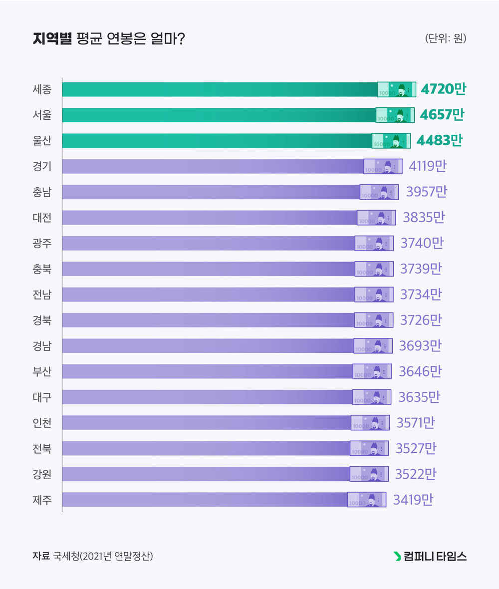 3. 세종시 같이 굉장히 표본을 꼬아놓은 집단을 제외하면, 우리나라에서 일반적으로 가장 부유한 도시는 울산일 가능성이 높다.