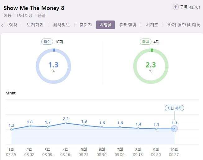 그 망했다던 쇼미8때보다 더 시청률 안나오는중