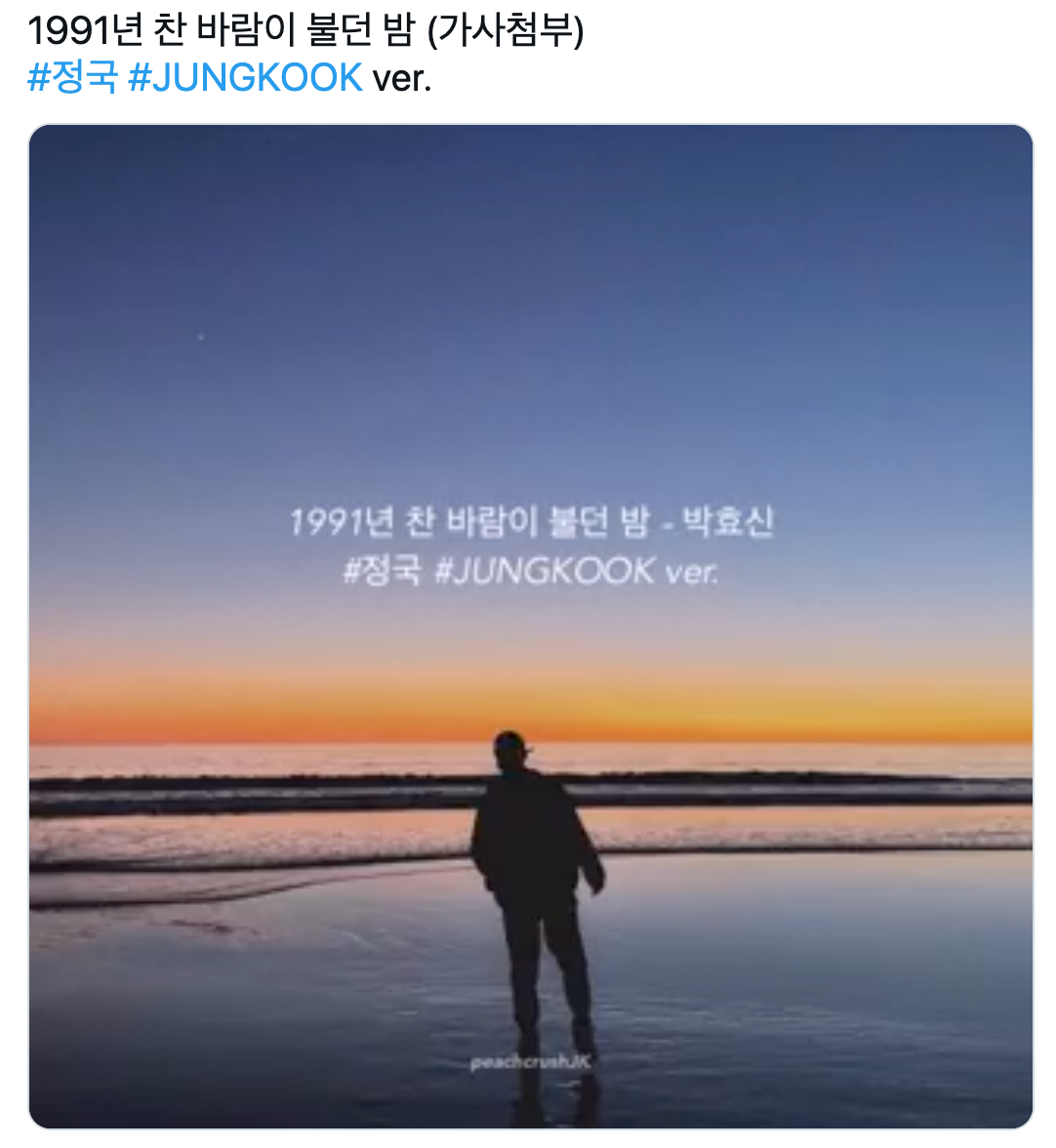 “1991년 찬 바람이 불던 밤 (가사첨부) #정국 #JUNGKOOK ver. https://t.co/RkpSUeyy94”