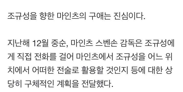 지난해 12월 중순, 마인츠 스벤손 감독은 조규성에게 직접 전화를 걸어 마인츠에서 조규성을 어느 위치에서 어떠한 전술로 활용할 것인지 등에 대한 상당히 구체적인 계획을 전달했다.