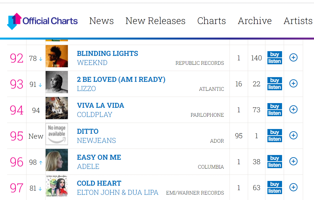 영국 오피셜 UK차트 진입 (4세대 최초)
