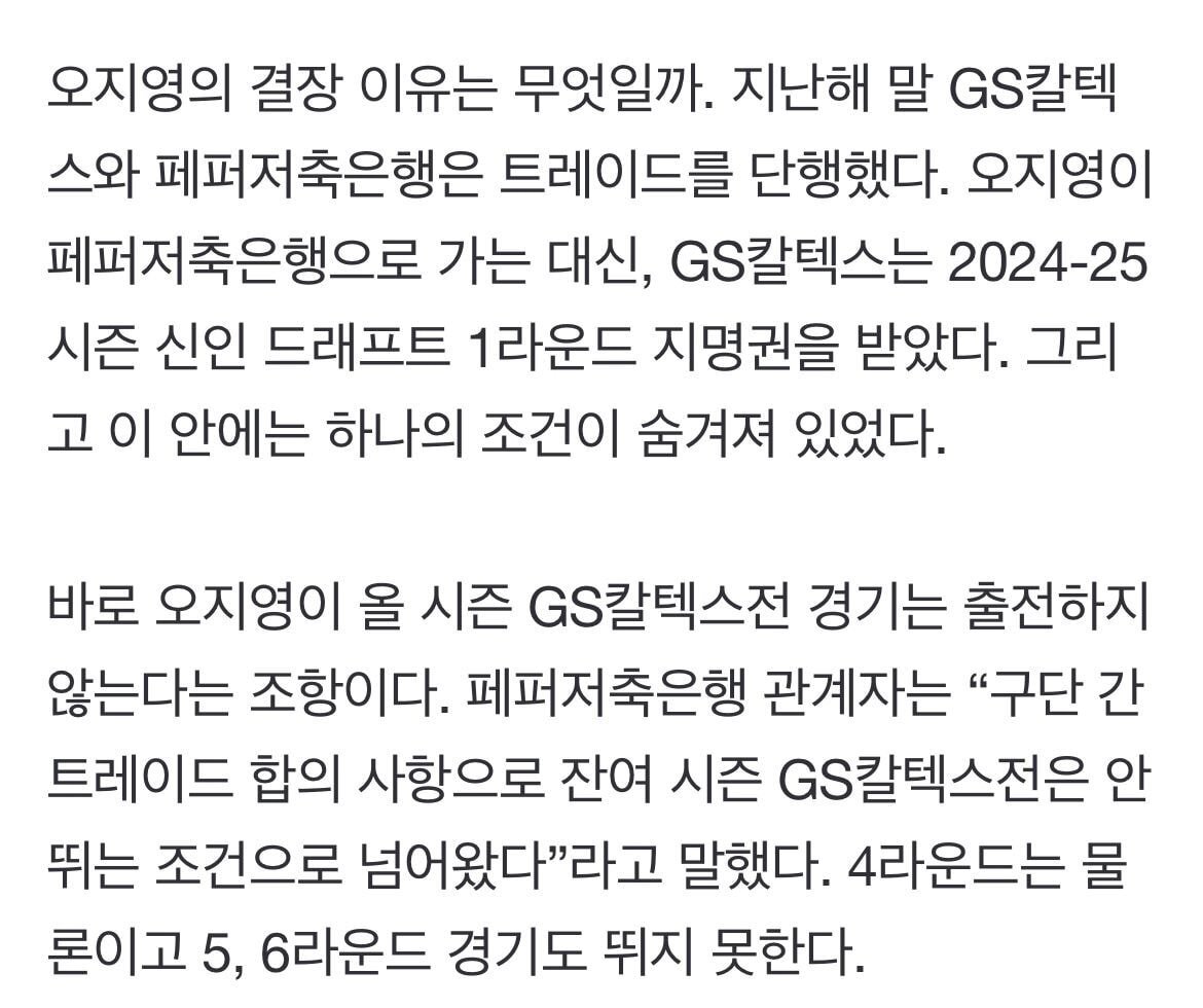 오지영이 남은 GS전 경기에는 출전하지 못한단 조항이었다 함