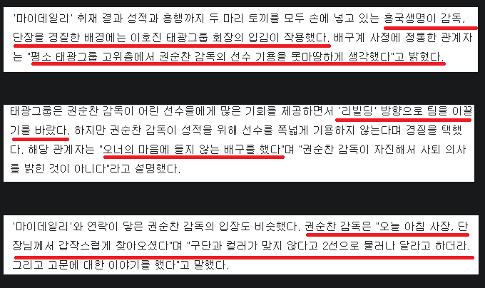 오너가 시킨대로 선수 기용안했다고