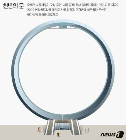 과거 2002년 월드컵 기념으로 건설되려다 무산된 천년의 문과 같은 건축물.