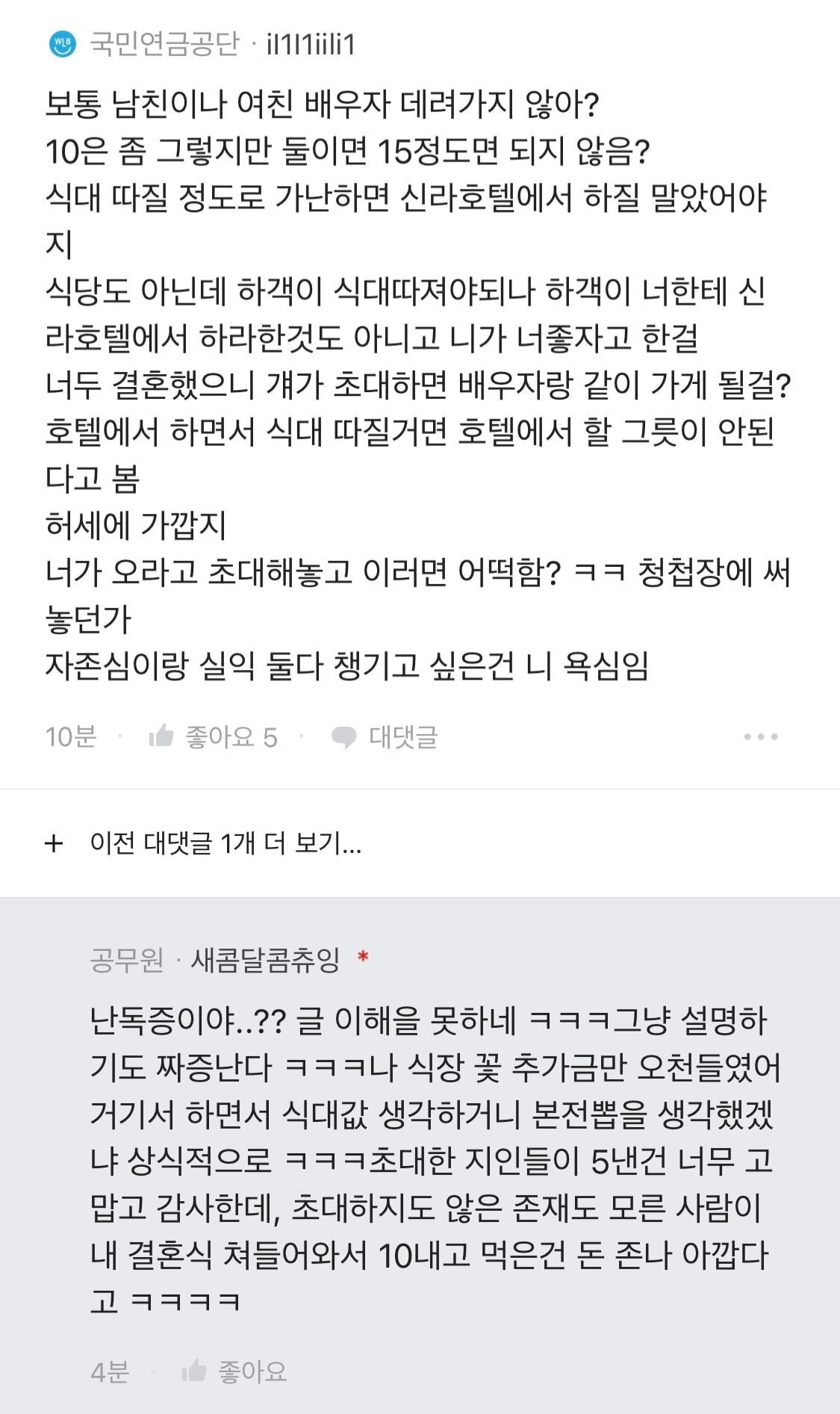 지인이 남친 데려와서 10만원 냈다고 분노중