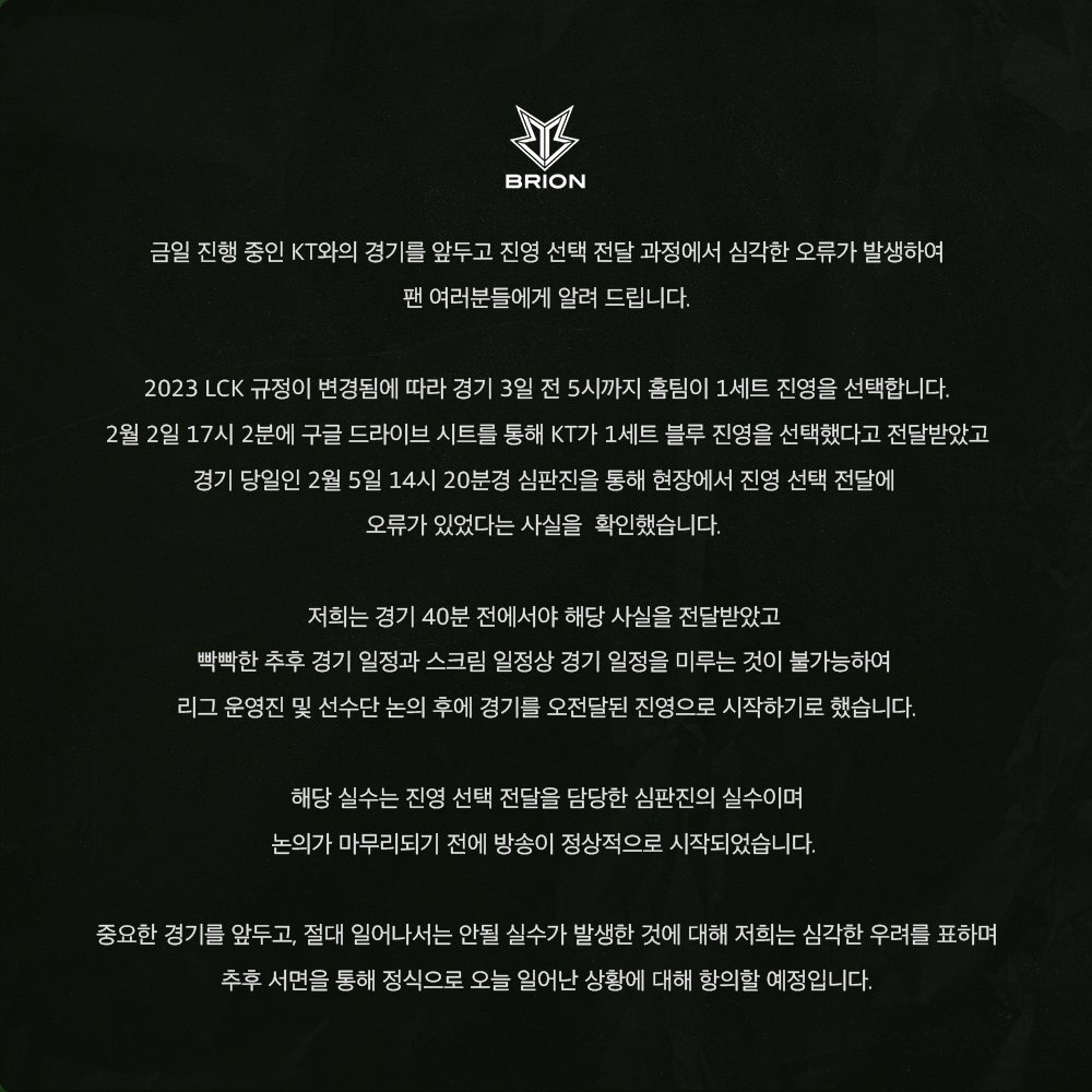 3. 문제는 KT는 A 사이드를 골랐는데 상대팀 브리온한테는 KT가 B 사이드를 선택했다고 알림