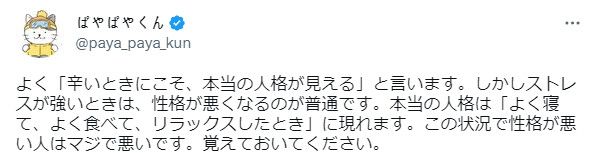진짜 인격은 '잘 자고, 잘 먹고, 릴랙스했을 때' 드러납니다.