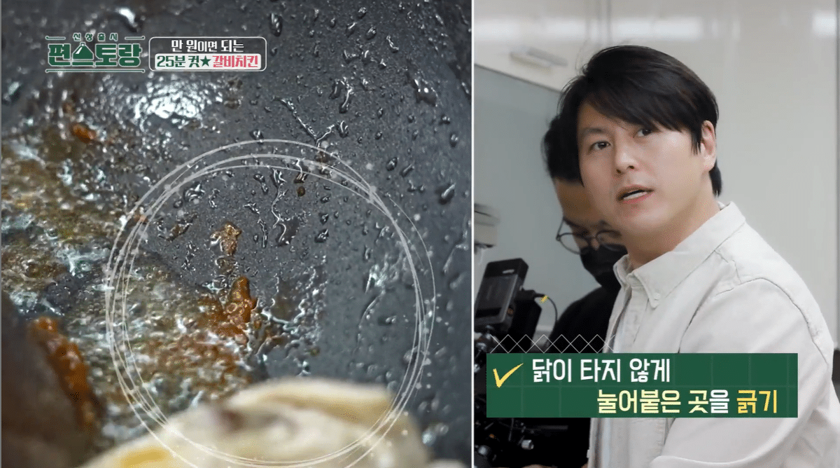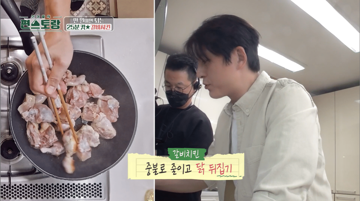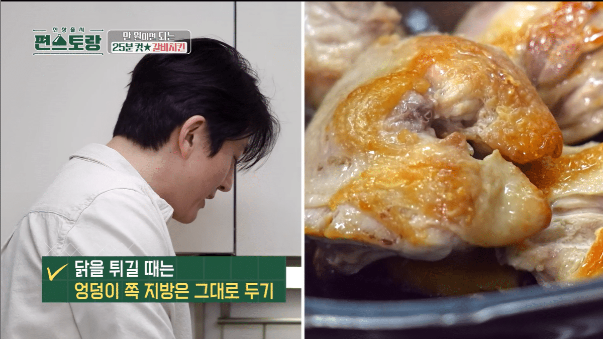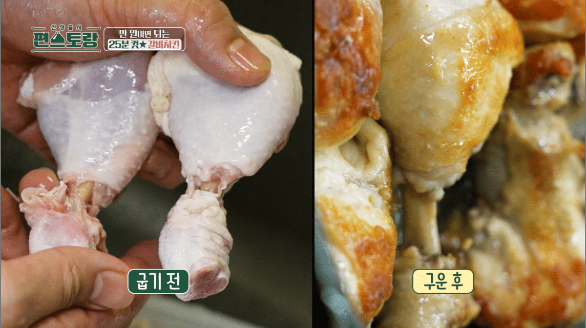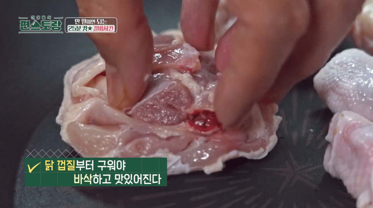 닭 한쪽 면을 3분 구워주면 됨
