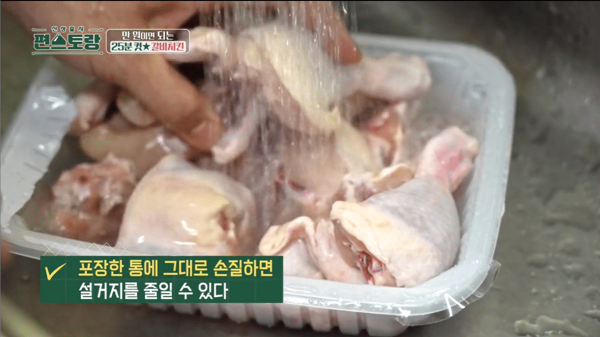흐르는 물에 닭볶음탕용 닭 씻기
