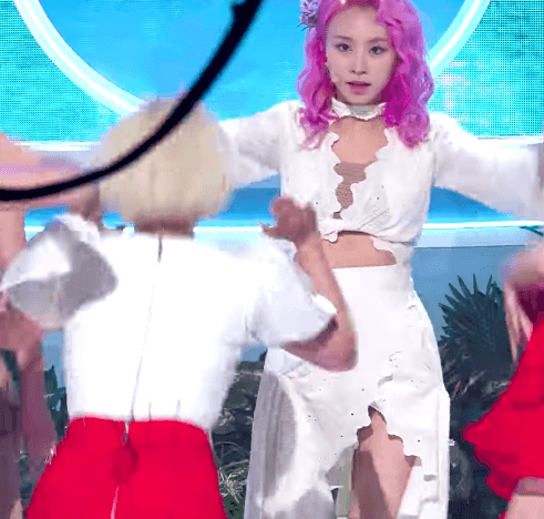 이때 사나가 테이블 안무 부분에서 정연이 손을 잡아줌