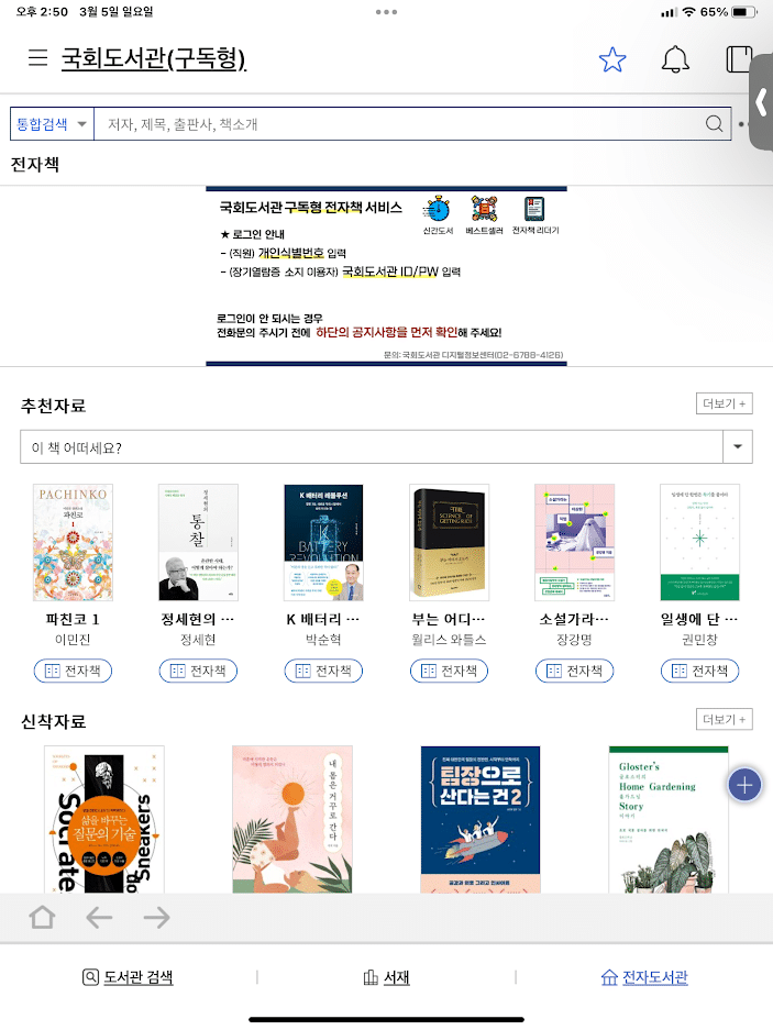 4. 국회 전자 도서관 접속해서 책을 보시면 됩니다.