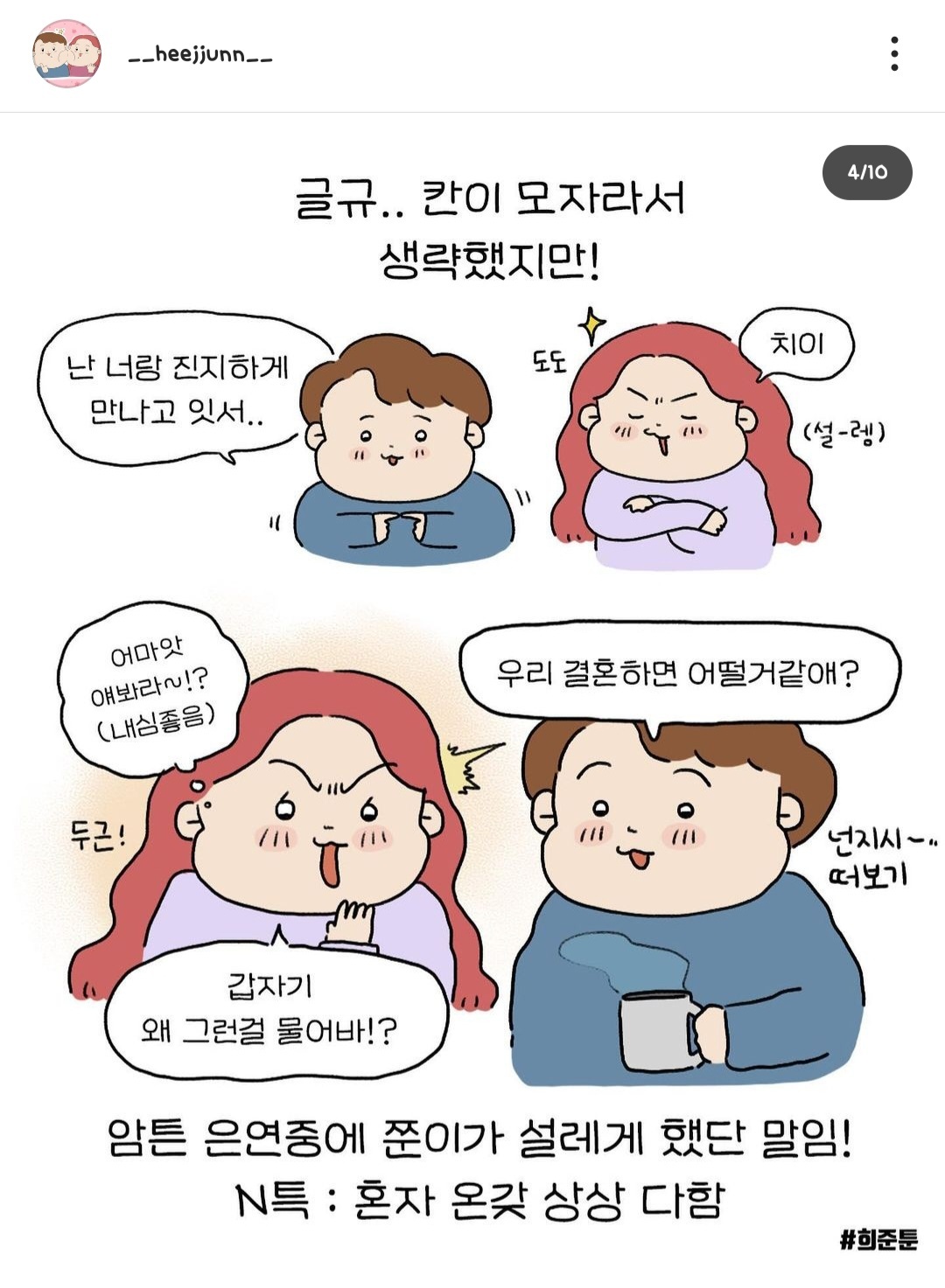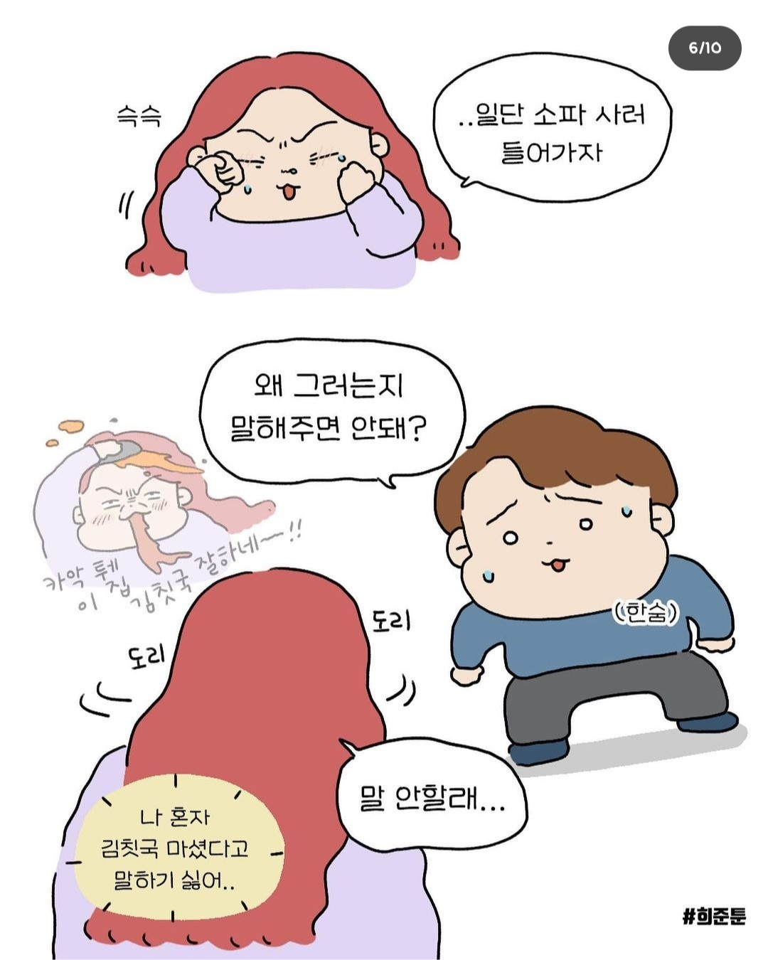 삐졌는데 혼자 김칫물 마시거나 너무 쪼잔한 걸로 삐진거 아니까 말하기 싫은거라고 댓글로 공감파티 하더라