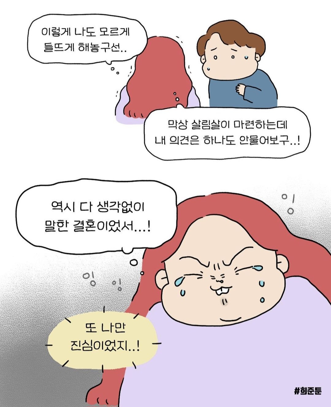 여친이 자기한테 살림살이 의견 안물어본다고 삐져서 갑자기 오열