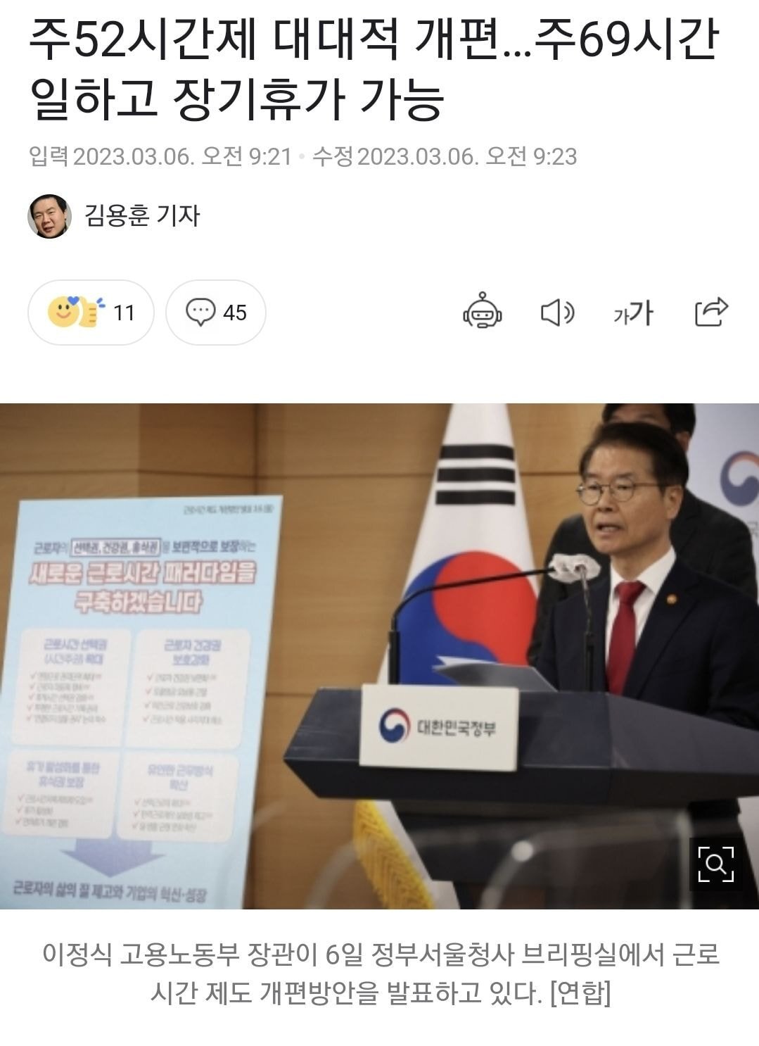 이정식 고용노동부 장관은 6일 비상경제장관회의에서 ‘근로시간 제도 개편 방안’을 확정하고 정부서울청사에서 이같은 내용의 정부안을 발표했다. 이 장관은 “‘1주 단위’의 획일적·경직적인 근로시간 제도로기업과 근로자에게 “선택의 기회”가 없는 상황이 70년간 유지되고 있다”면서 “주 상한 규제에만 집중하면서 실효적인 건강권 보호조치는 부족하고, 공짜노동과 같은 위법·불합리한 관행도 여전하다”고 현행 제도가 가지고 있는 한계를 지적했다. 이어 그는 “제도 개편의 지향점은 선택권, 건강권, 휴식권의 보편적 보장”이라며 “근로자의 삶의 질 제고와 기업의 혁신·성장을 지원하는 법·제도적 토대를 마련하기 위한 조치”라고 설명했다.