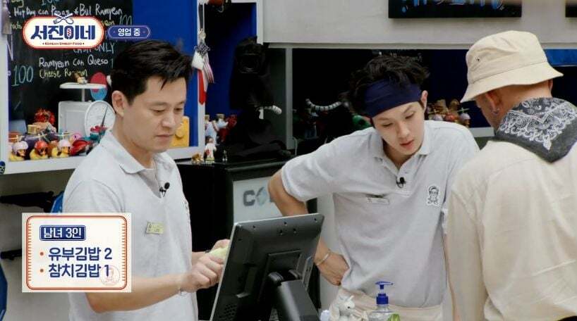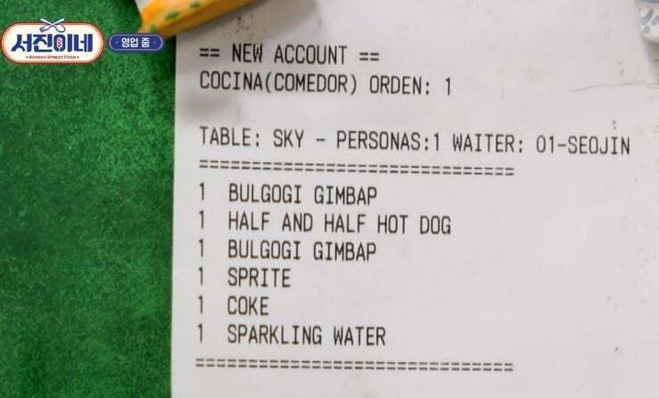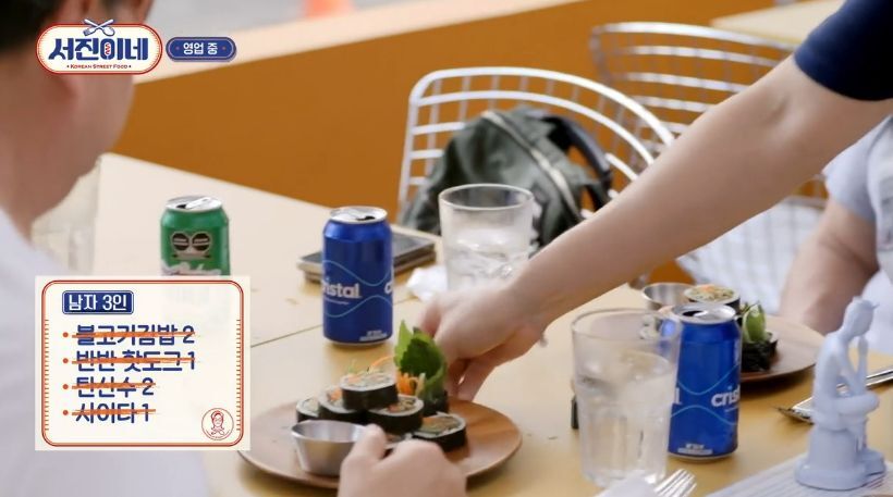 남자 3인 불고기김밥2 반반핫도그1 탄산수2 사이다1