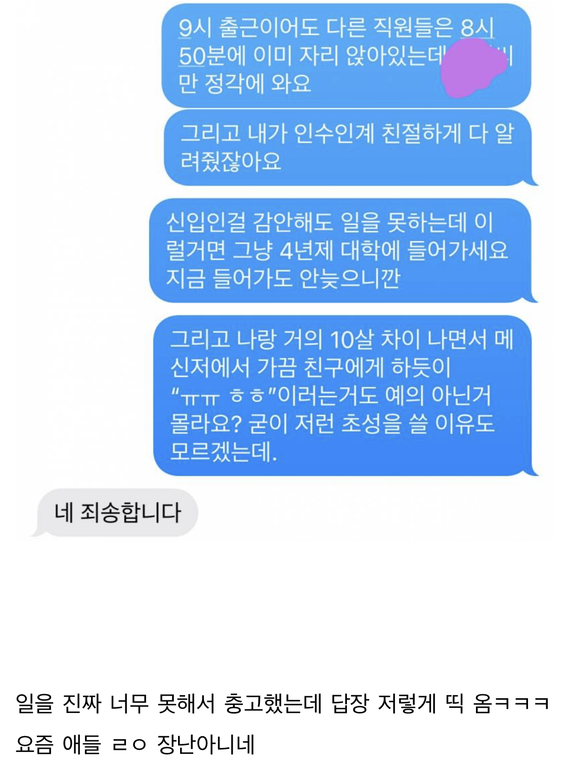 댓글은 전부 작성자가 꼰대라고 하는 중