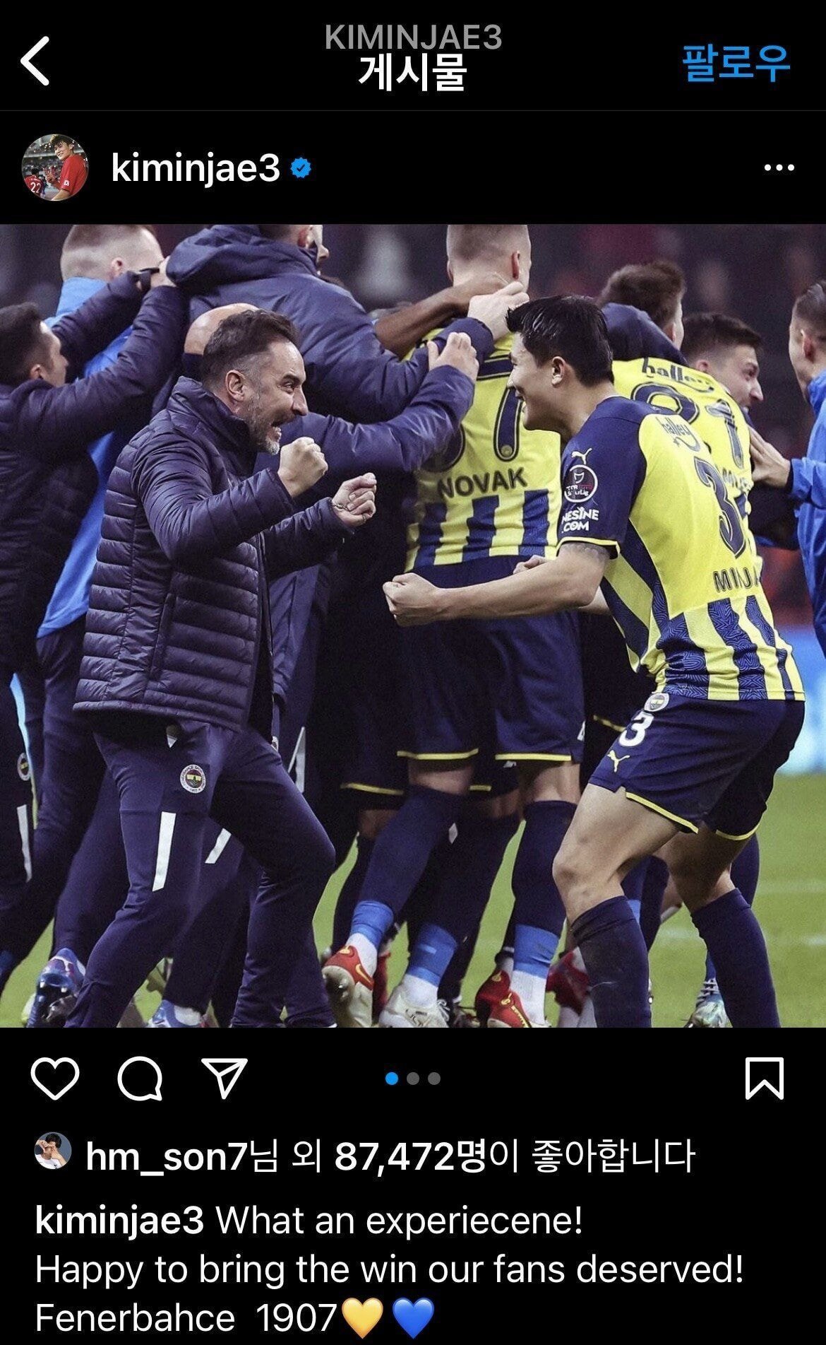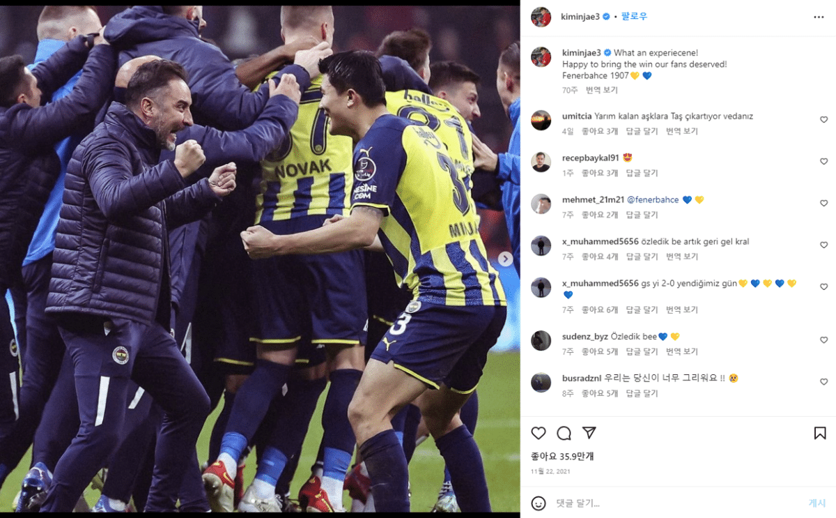 21년도 김민재 인스타 게시물인데 손흥민이