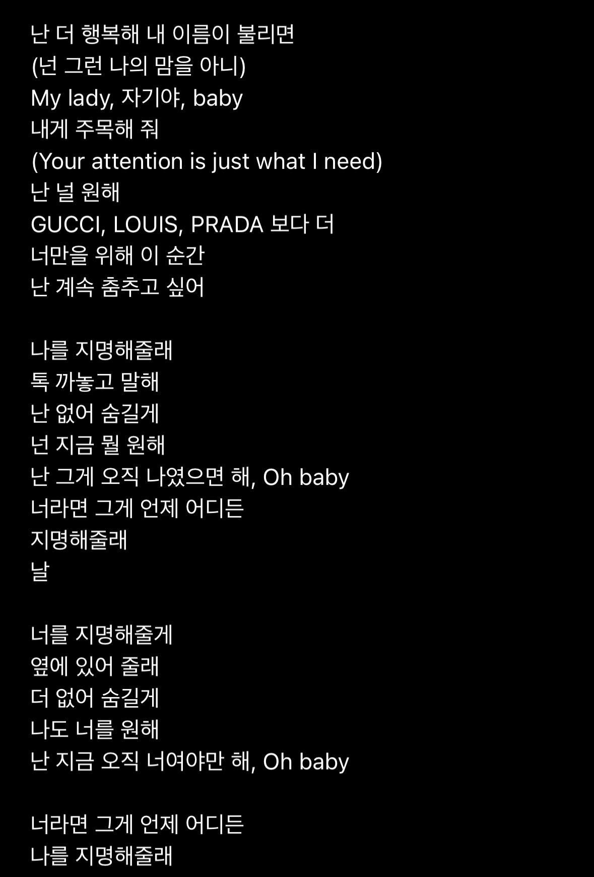 호빠 호스트 컨셉으로 지명해달라는 노래 가사..